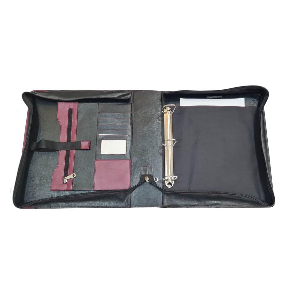 แฟ้ม3D โฟลิโอหนังแท้มีซิปตัวจัดระเบียบขนาดใหญ่ที่เก็บของแบบพับได้สำหรับธุรกิจที่เก็บแบบสีดำสีม่วง