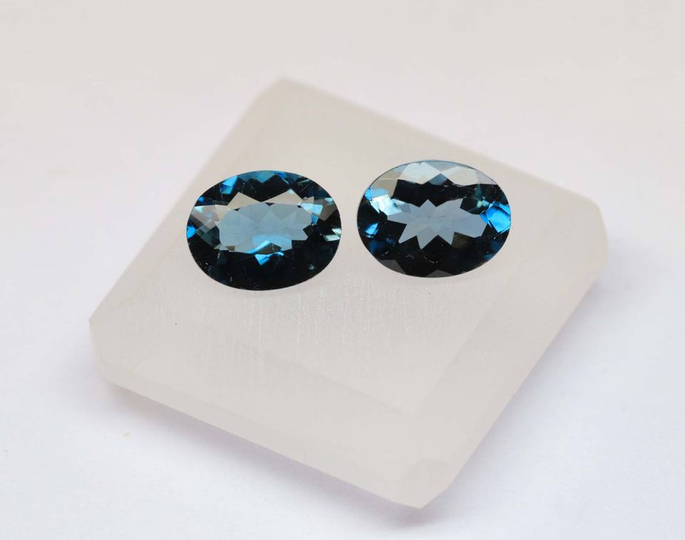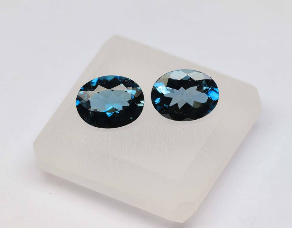แท้ลอนดอนสีฟ้าบุษราคัมคู่สีลึกสีน้ำเงินโทแพซอัญมณีทรงรีขนาด9x7mm
