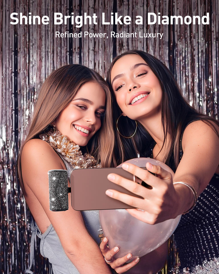 พาวเวอร์แบงค์ไร้สายเพชรแท้สุดหรู ขนาดมินิ พกพาสะดวก UL 5000mAh USB C ชาร์จเร็วสองทิศทาง สำหรับผู้หญิง