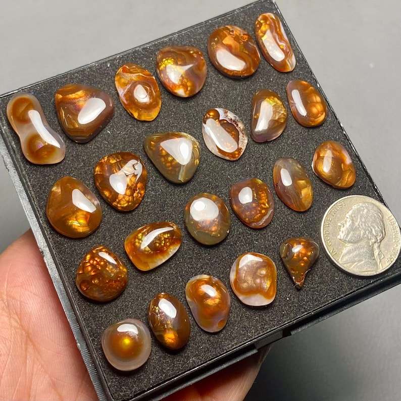 Keyword:Genuine Mexican Fire Agate Cabochon With Vivid Iridescent Colors