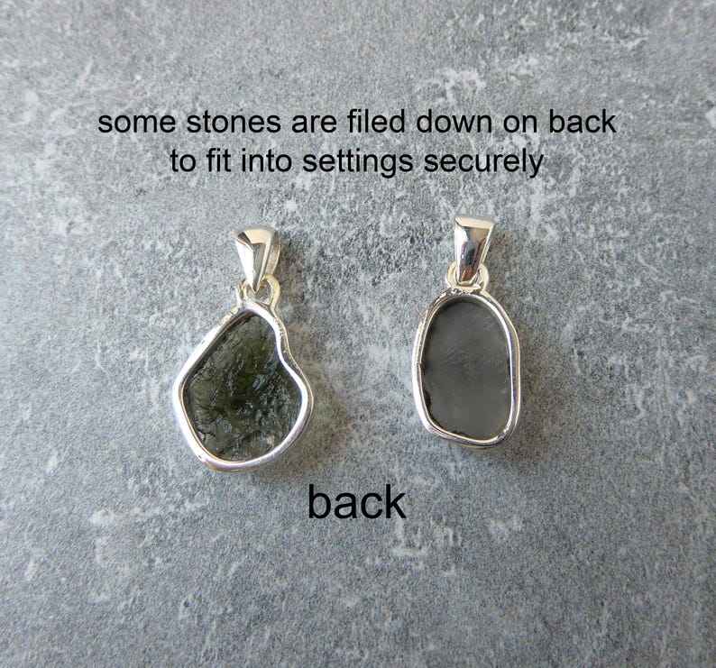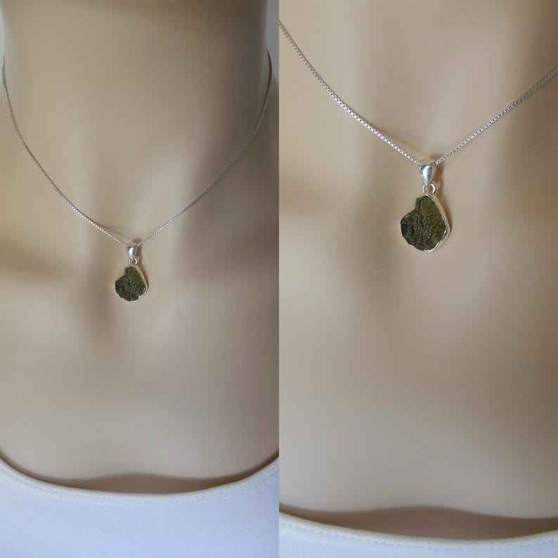 สร้อยคอหินบำบัด Moldavite แท้ที่มีหินอัญมณีสีเขียวสเตอริงเงินการออกแบบอุกกาบาต GSA