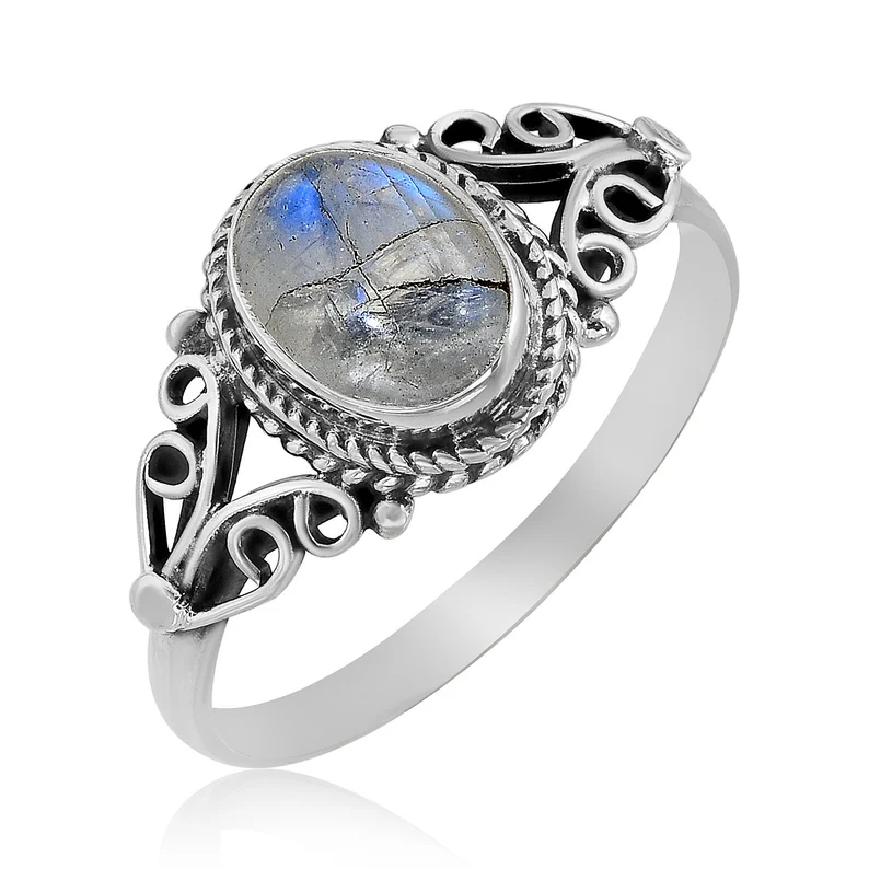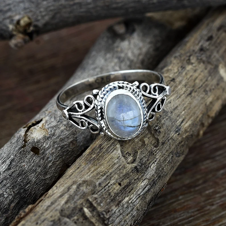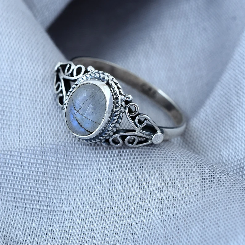 แหวนพลอยมูนสโตนแท้925แหวนเงินสเตอร์ลิงแฮนด์เมดสำหรับผู้หญิงแหวนซ้อนเครื่องประดับขายส่ง