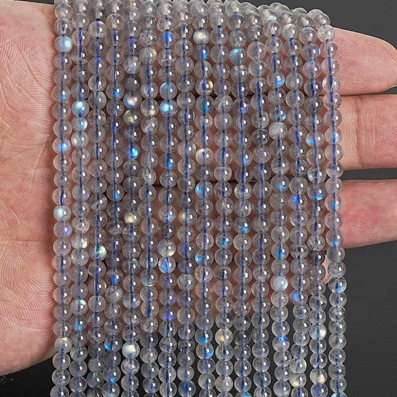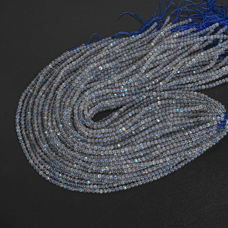 ลูกปัดลาบราดอไรต์สีเทาแท้ เกรด AA ขนาด 2/3/4 มม. รูปทรงกลม แบบเม็ดเดี่ยว ความยาว 15 นิ้ว/7.5 นิ้ว ขายส่ง