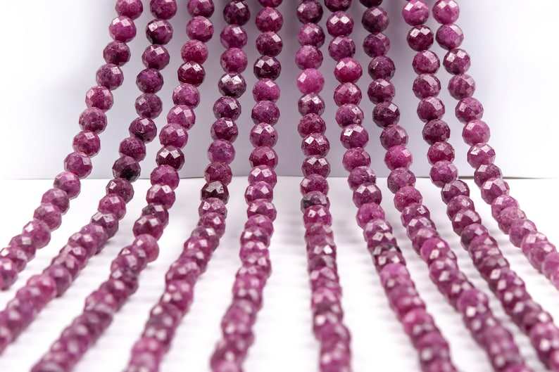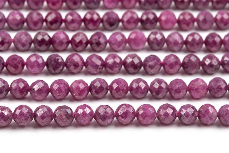 ลูกปัดพลอยทับทิมสีแดงธรรมชาติแท้ ทรงกลมเหลี่ยมเพชรพลอยสีม่วง สำหรับทำเครื่องประดับ สร้อยข้อมือ สร้อยคอ