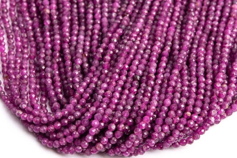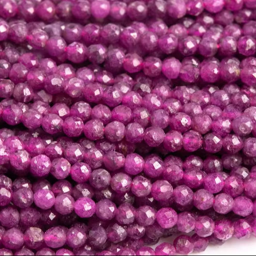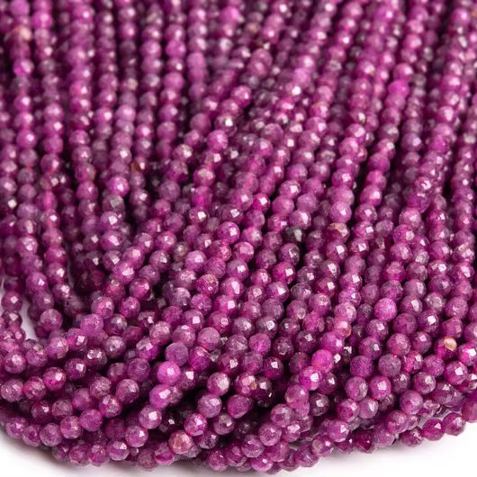 ลูกปัดพลอยทับทิมแท้สีม่วงแดงทรงกลมเหลี่ยมเพชรพลอยสำหรับทำเครื่องประดับสร้อยข้อมือสร้อยคอ