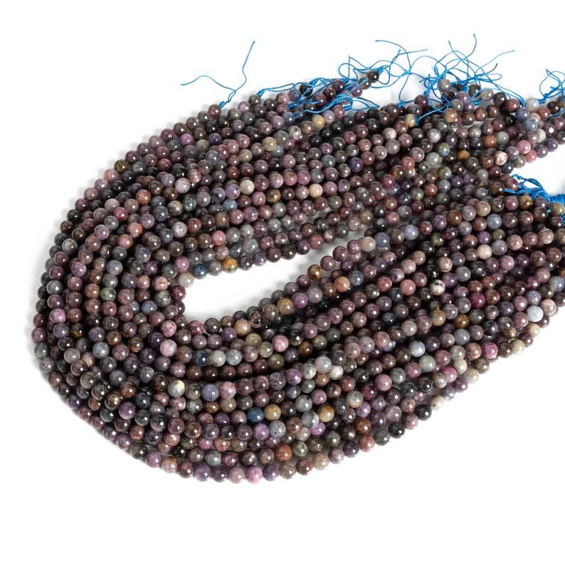 ลูกปัดพลอยทับทิมไพลินแท้ธรรมชาติหลากสีทรงกลมสำหรับทำเครื่องประดับสร้อยข้อมือสร้อยคอ