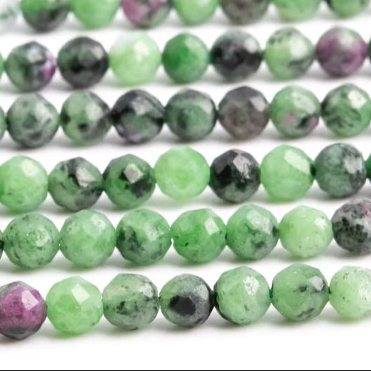 ลูกปัดพลอยรูบี้โซไซต์แท้ธรรมชาติ สีเขียวดำ ทรงกลมเหลี่ยมเพชรพลอย สำหรับทำเครื่องประดับ สร้อยข้อมือ