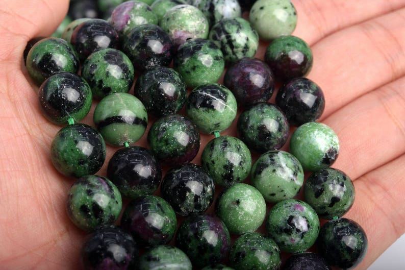 ลูกปัดพลอยทับทิมโซไซต์ธรรมชาติแท้ สีเขียวดำ ทรงกลม สำหรับทำเครื่องประดับ สร้อยข้อมือ สร้อยคอ