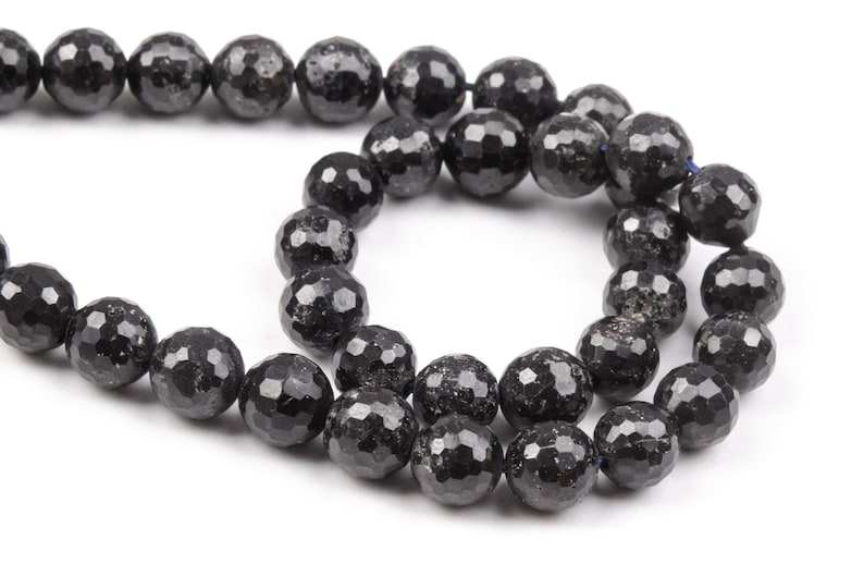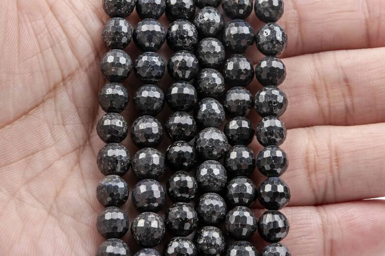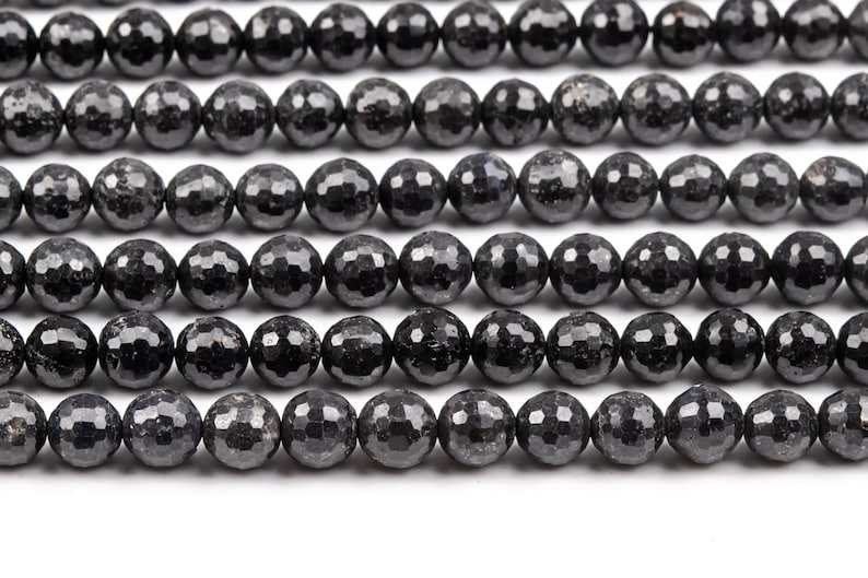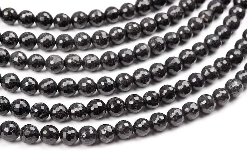 ลูกปัดพลอยไพลินธรรมชาติแท้ สีดำ ทรงกลมเหลี่ยมเล็ก สำหรับทำเครื่องประดับ สร้อยข้อมือ DIY