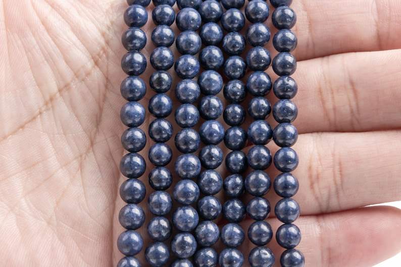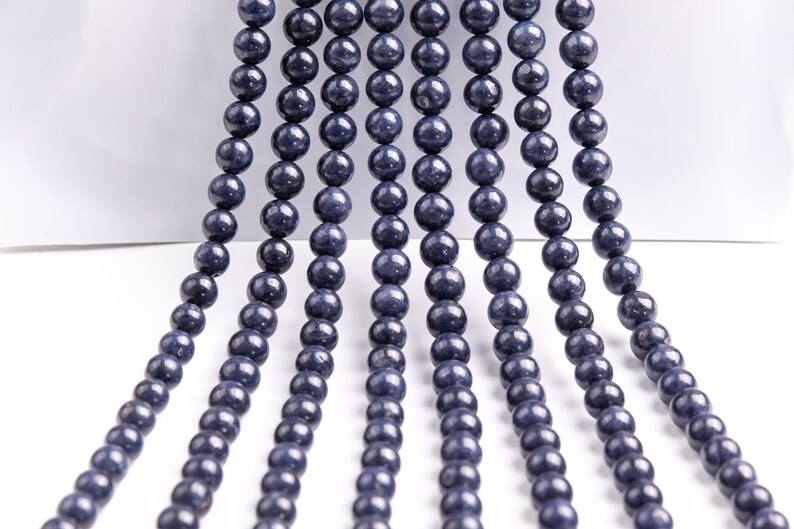 ลูกปัดพลอยไพลินธรรมชาติแท้ สีน้ำเงิน รูปทรงกลม สำหรับทำเครื่องประดับ สร้อยข้อมือ สร้อยคอ งานฝีมือ DIY