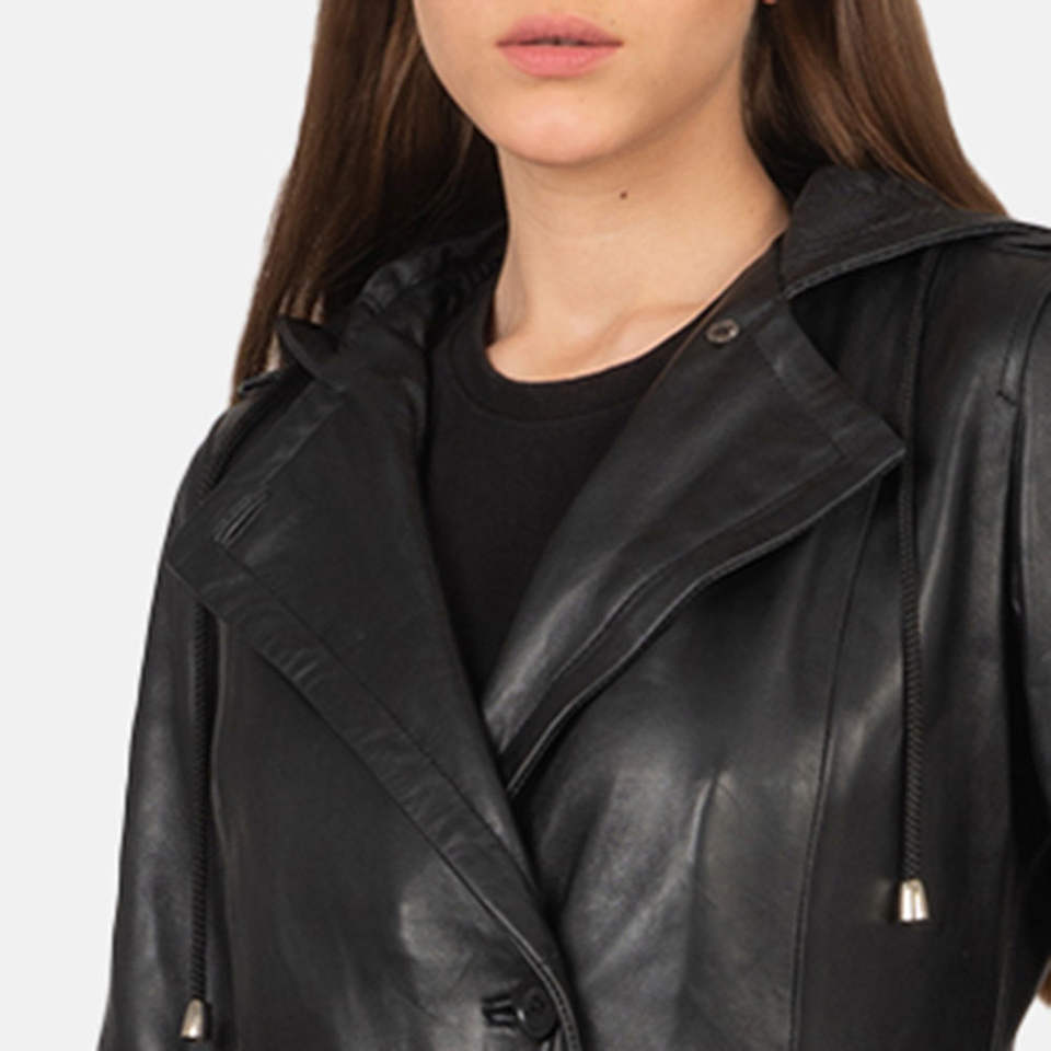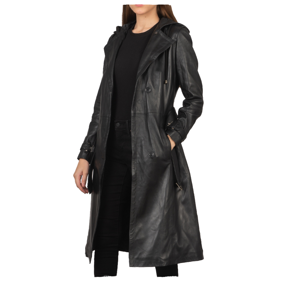 เสื้อโค้ทหนังแท้สำหรับผู้หญิง รุ่นใหม่สำหรับฤดูหนาว แบบยาว บุด้วยผ้าฝ้าย ดีไซน์กระดุมสองแถว มีฮู้ด สวมใส่สบาย ระบายอากาศได้ดี ปรับแต่งได้