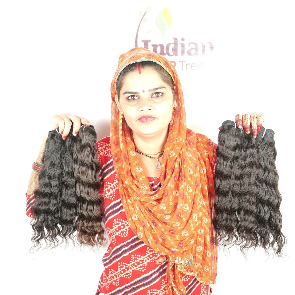 ผมมนุษย์แท้จากอินเดียผมธรรมชาติสีดำเป็นลอน