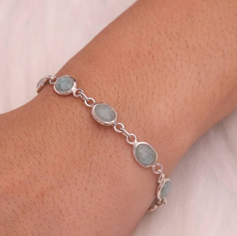 ชื่อผลิตภัณฑ์:สร้อยข้อมือเงินพลอยอะความารีนธรรมชาติ