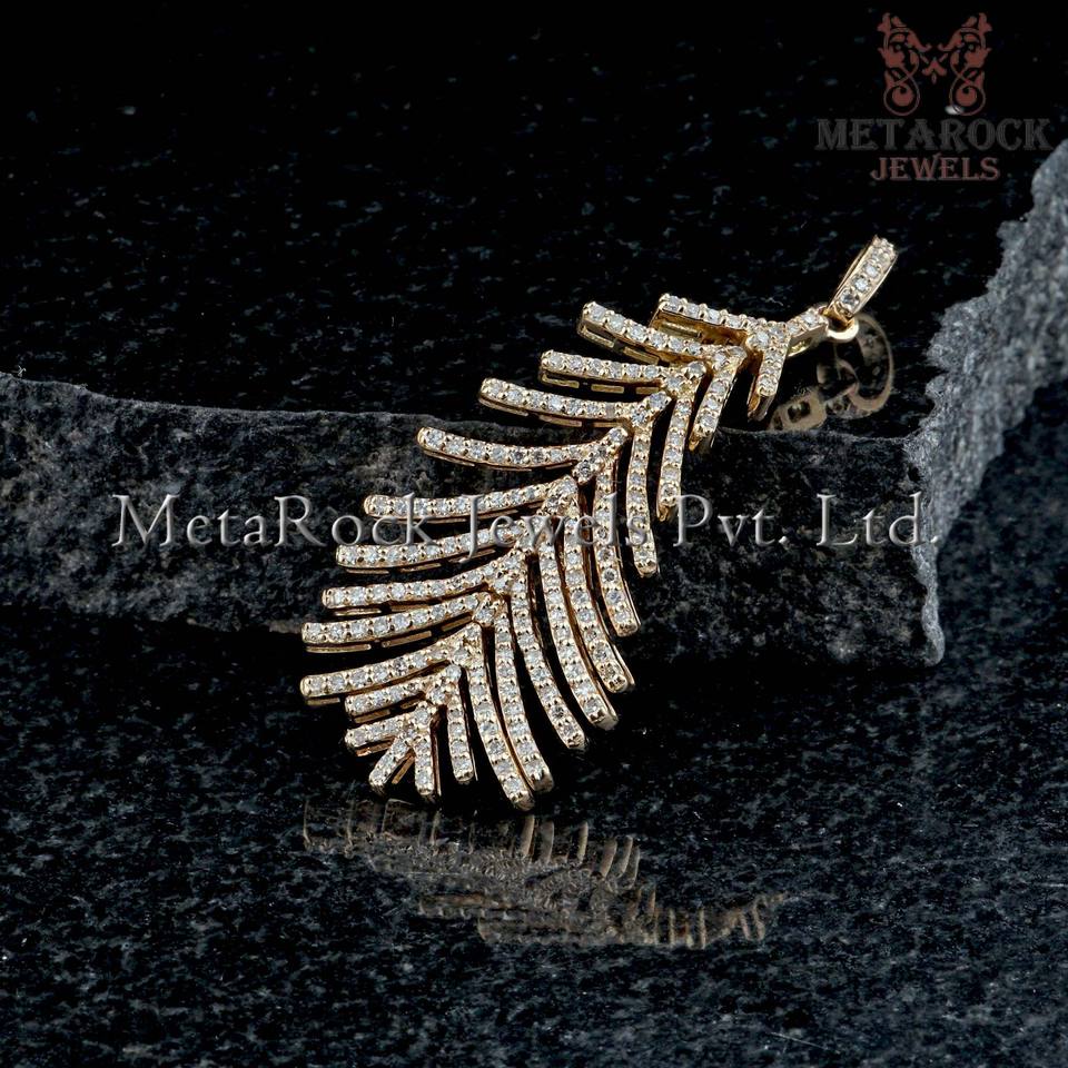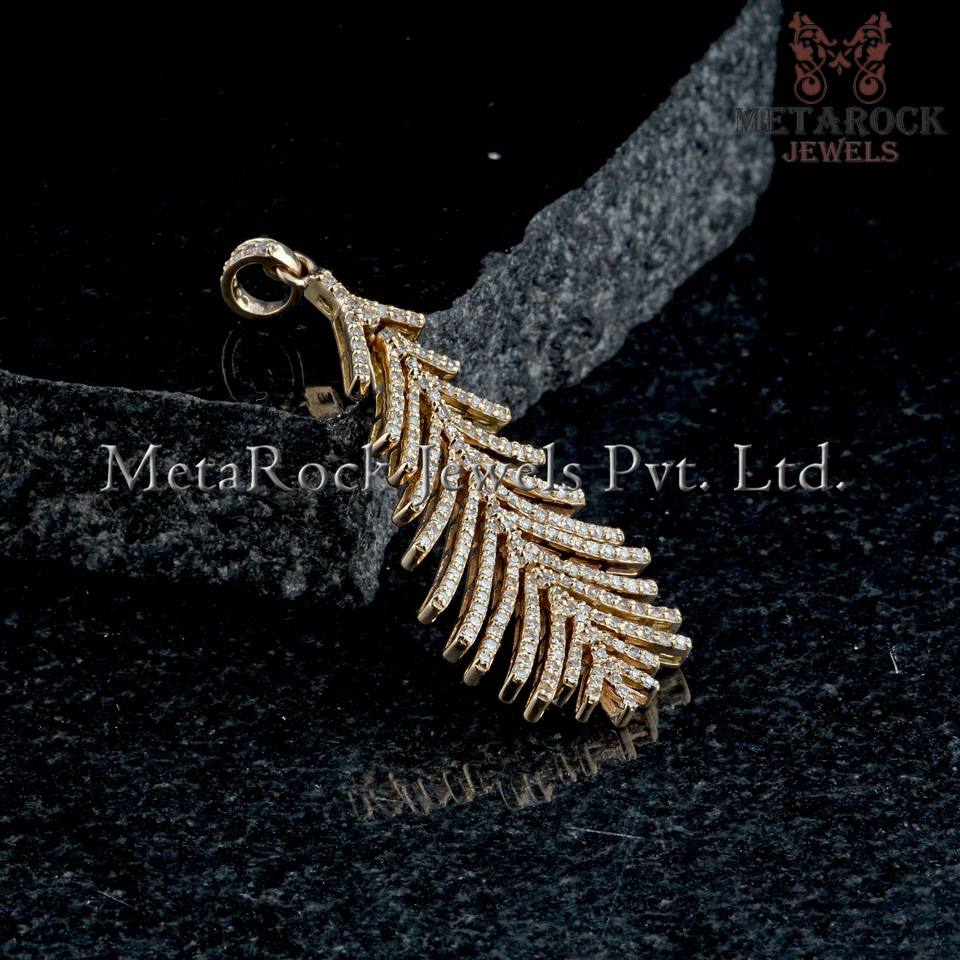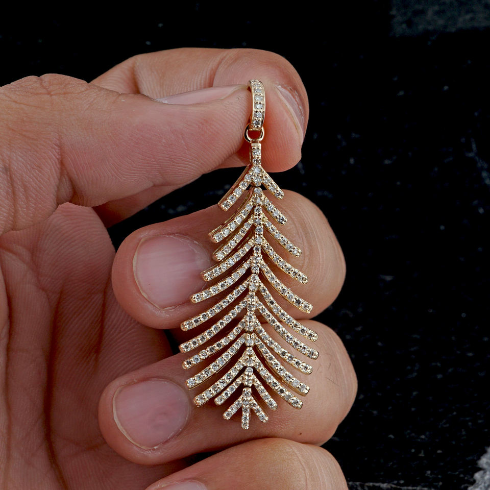 แท้ปูเพชรแข็ง14พันสีเหลืองทองแฮนด์เมดออกแบบขนนกจี้สร้อยคอเครื่องประดับขายส่ง