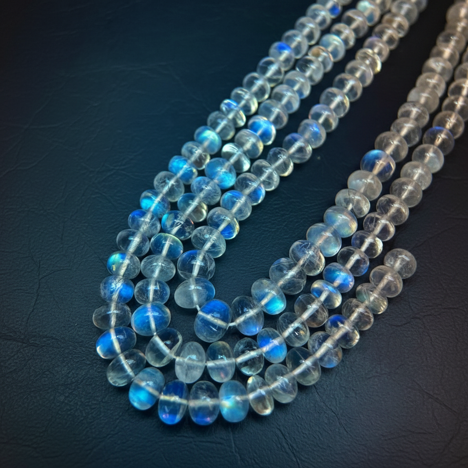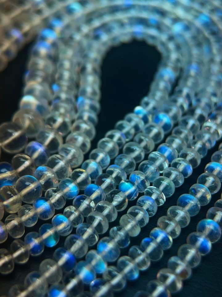ลูกปัดมูนสโตนสีรุ้งของแท้พลอยสีกรมท่าเพลิงสีฟ้าสำหรับทำเครื่องประดับอัญมณีหลวมสำหรับทำเครื่องประดับอัญมณี