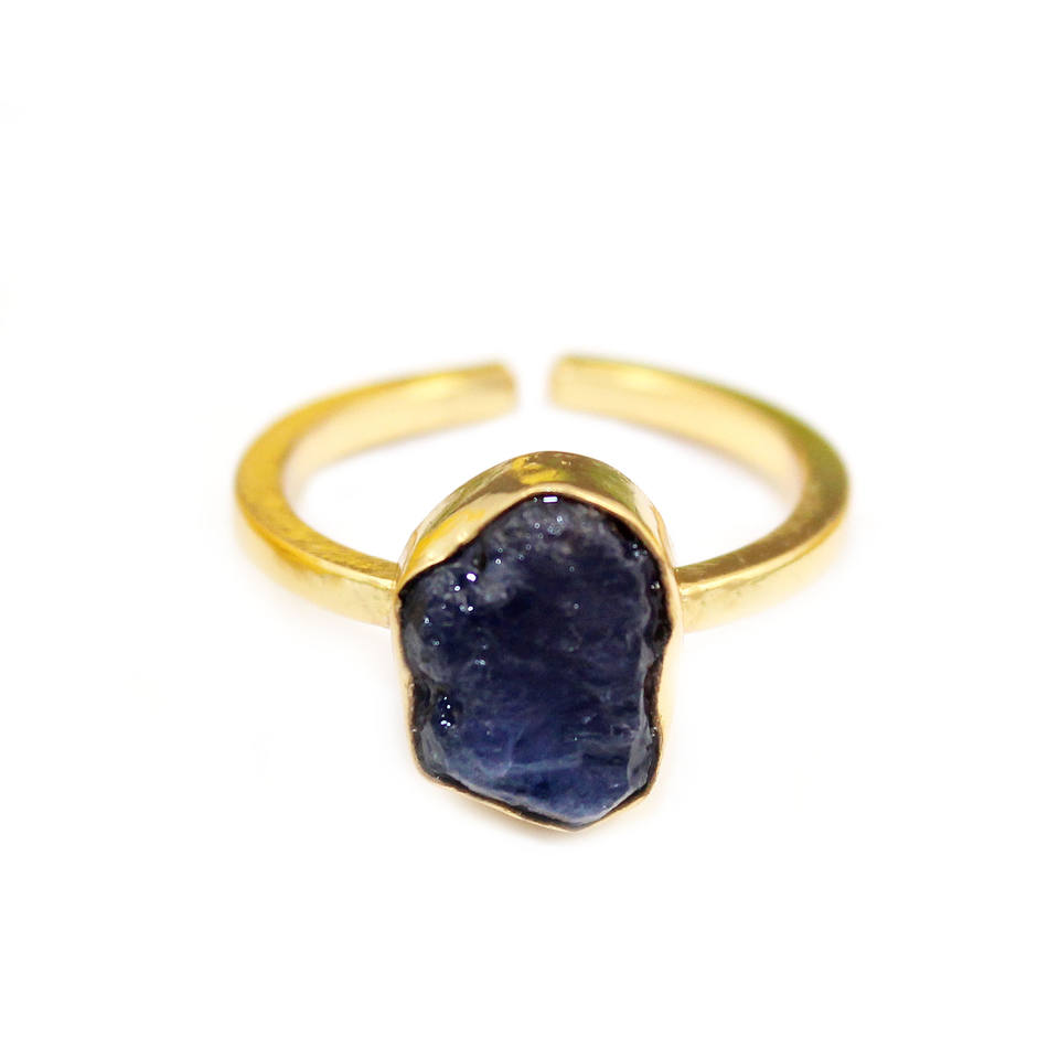 แหวนคริสตัลรักษาหินแซฟไฟร์สีฟ้าสดของแท้ทำด้วยมือขนาด22K เครื่องประดับสำหรับผู้หญิงขายส่งจำนวนมาก