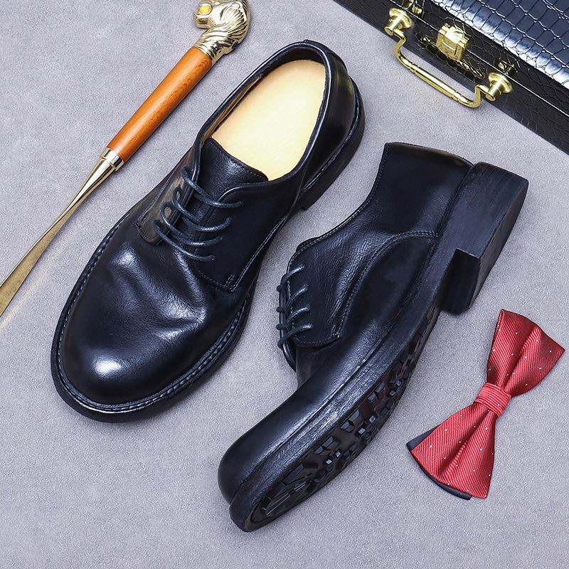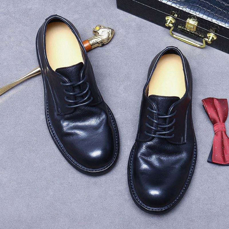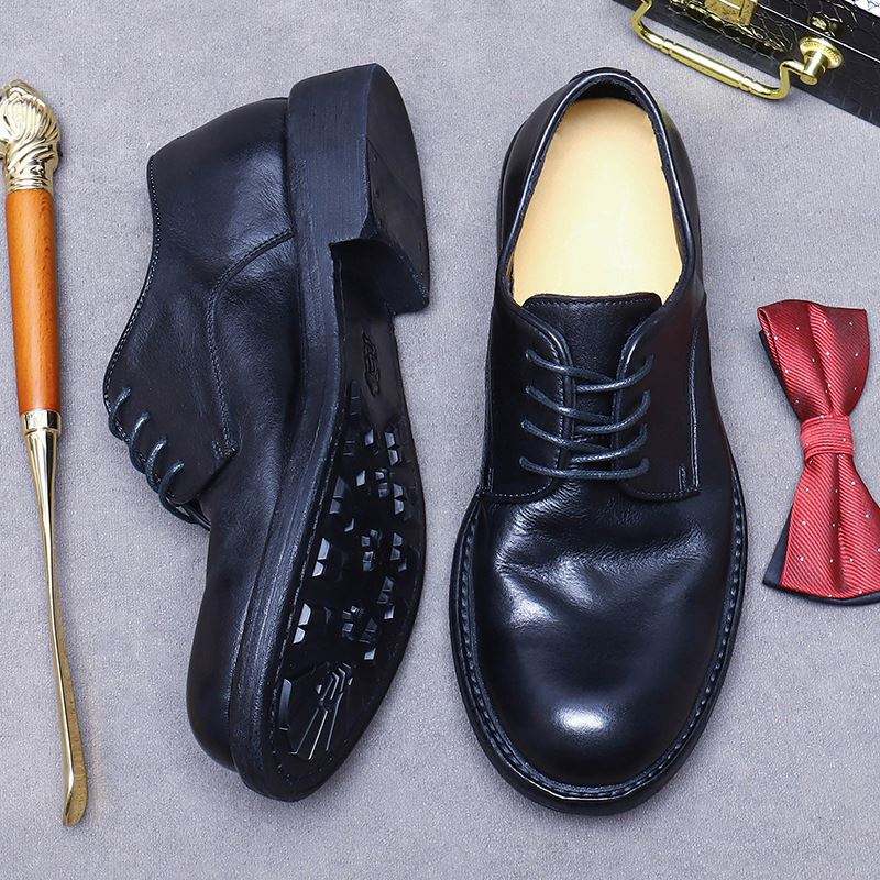 พื้นรองเท้าทำจากยางแท้ ผลิตด้วยมือแบบ Goodyear Welted รองเท้าผู้ชายสุดหรู น้ำหนักเบา ปิดแบบผูกเชือก กันลื่น ระบายอากาศได้ดี เหมาะสำหรับใส่ทำงาน ทรงหัวมน