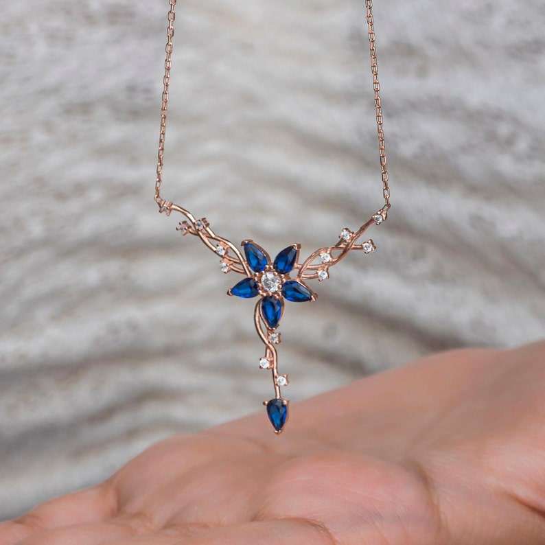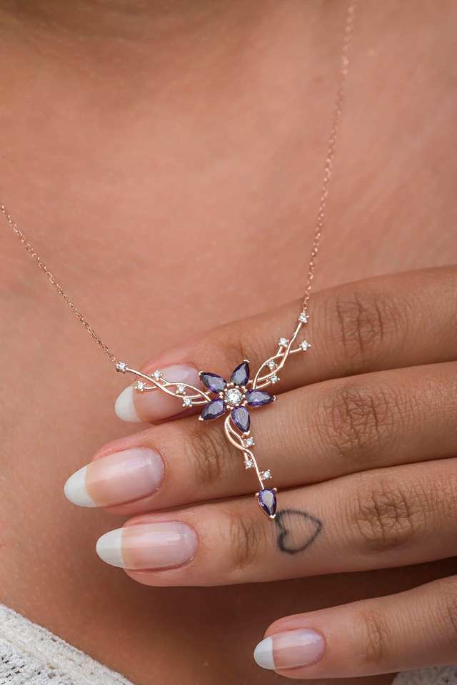 คำสำคัญ:สร้อยคอดอกไม้ไพลินสร้อยคอดอกไม้สีโรสโกลด์