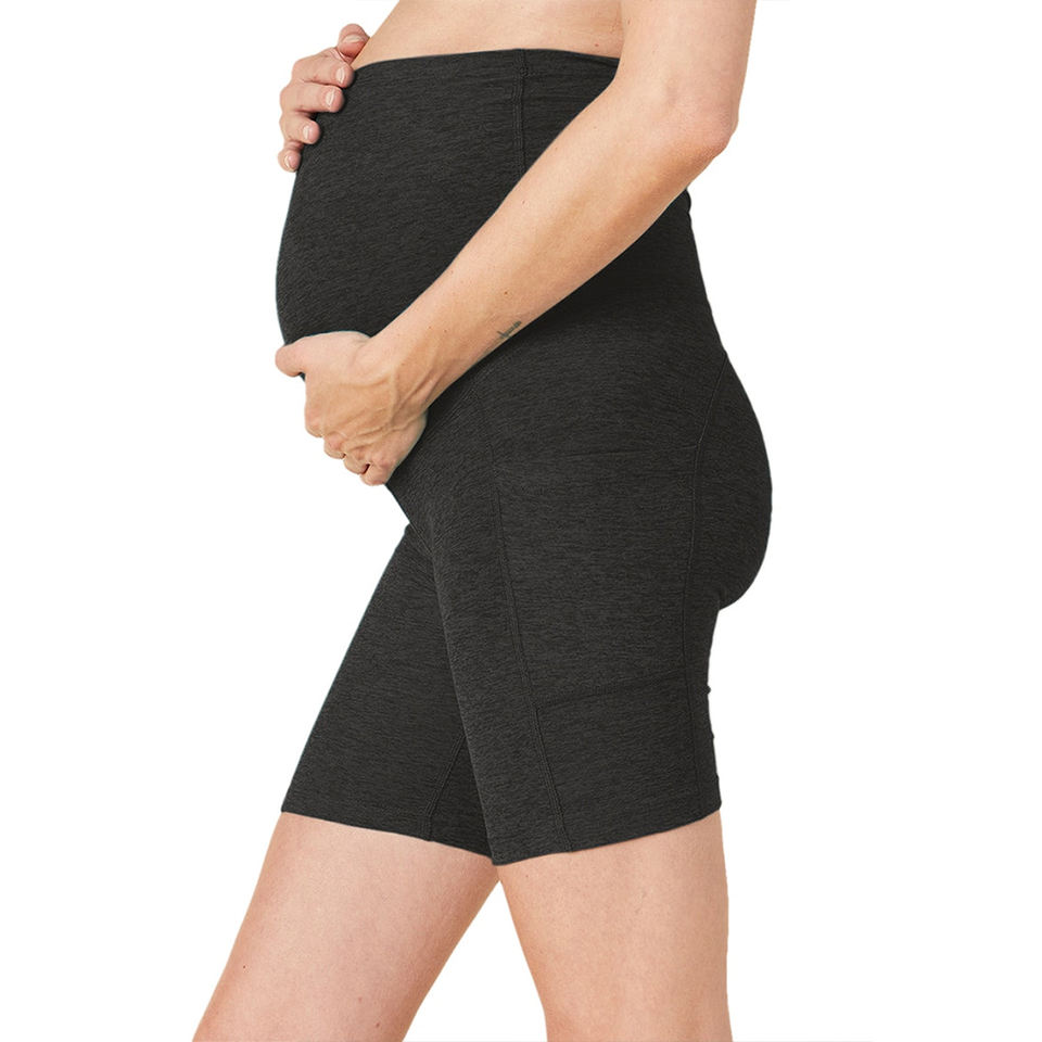 กางเกงปั่นจักรยานเอวสูงสำหรับคนท้องกางเกงขาสั้นผ้ายืดใส่เล่นกีฬายิมฟิตเนสแบบไร้ตะเข็บแท้กำหนดได้เอง