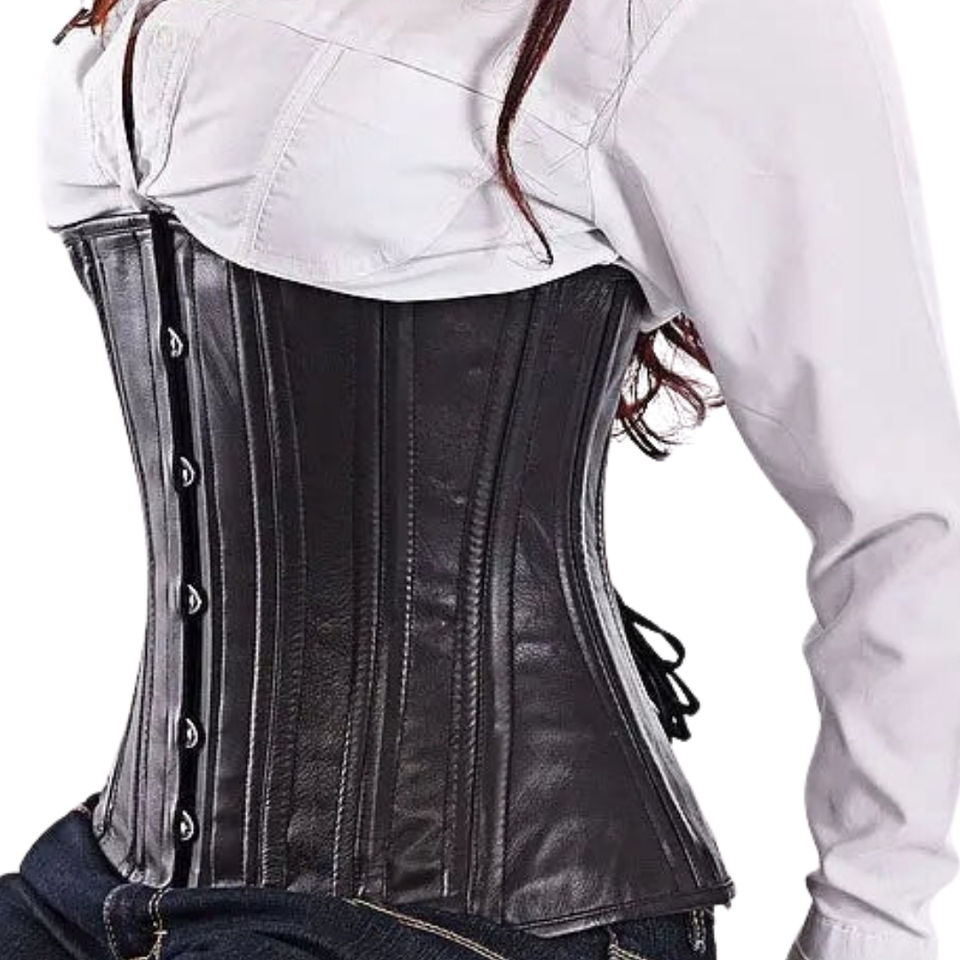 คอร์เซ็ทหนังแกะแท้แบบผูกเชือกด้านหลัง มีโครงเหล็กดันทรง สำหรับผู้หญิง