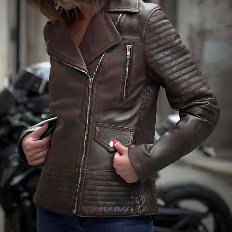 เสื้อแจ็คเก็ตหนังแกะแท้สำหรับผู้หญิง ระบายอากาศได้ดี เป็นมิตรกับสิ่งแวดล้อม เสื้อแจ็คเก็ตวาร์ซิตี้สำหรับฤดูหนาว ใหม่ ขายส่ง ราคาถูก