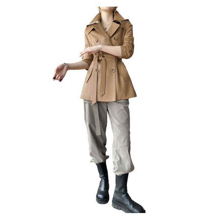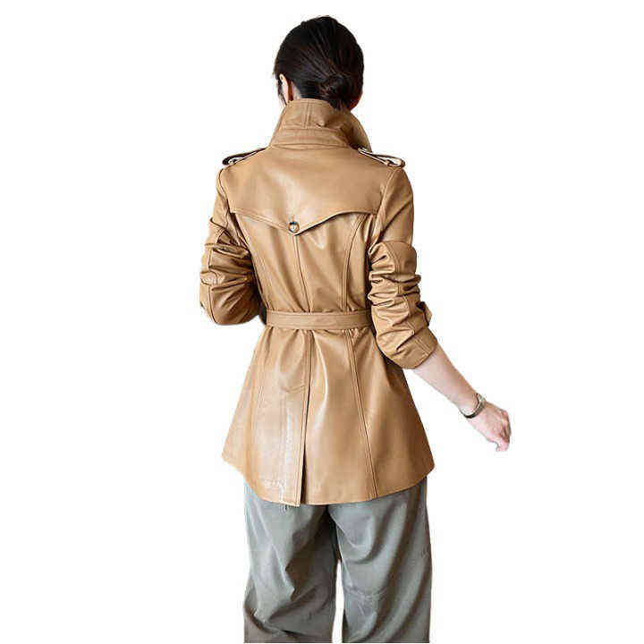 เสื้อแจ็คเก็ตกันลมแบบเย็บติดกระดุม คอปก ทำจากหนังวัวแท้ สำหรับผู้หญิง ฤดูใบไม้ร่วง ฤดูหนาว กันน้ำ เป็นมิตรกับสิ่งแวดล้อม