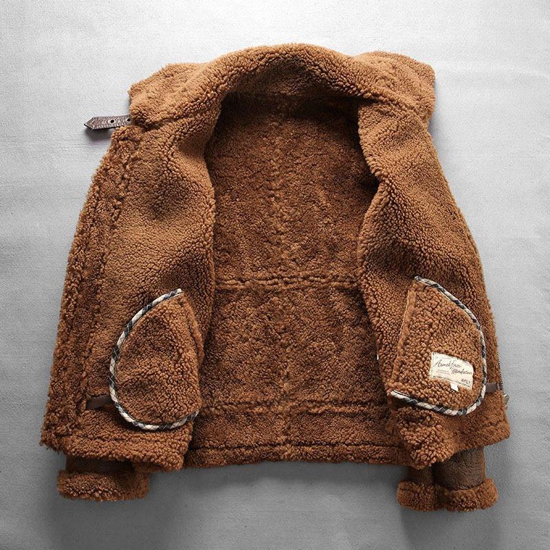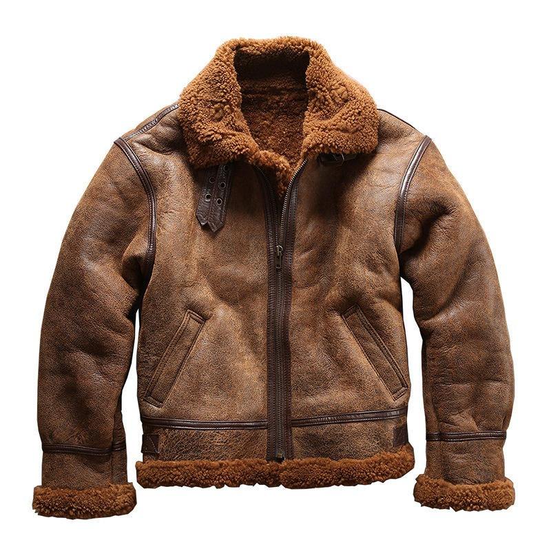 แจ็คเก็ตนักบินวินเทจ B3 แบบมีปกขนเฟอร์เทียม ทำจากหนังแกะแท้ 100% สำหรับผู้ชาย