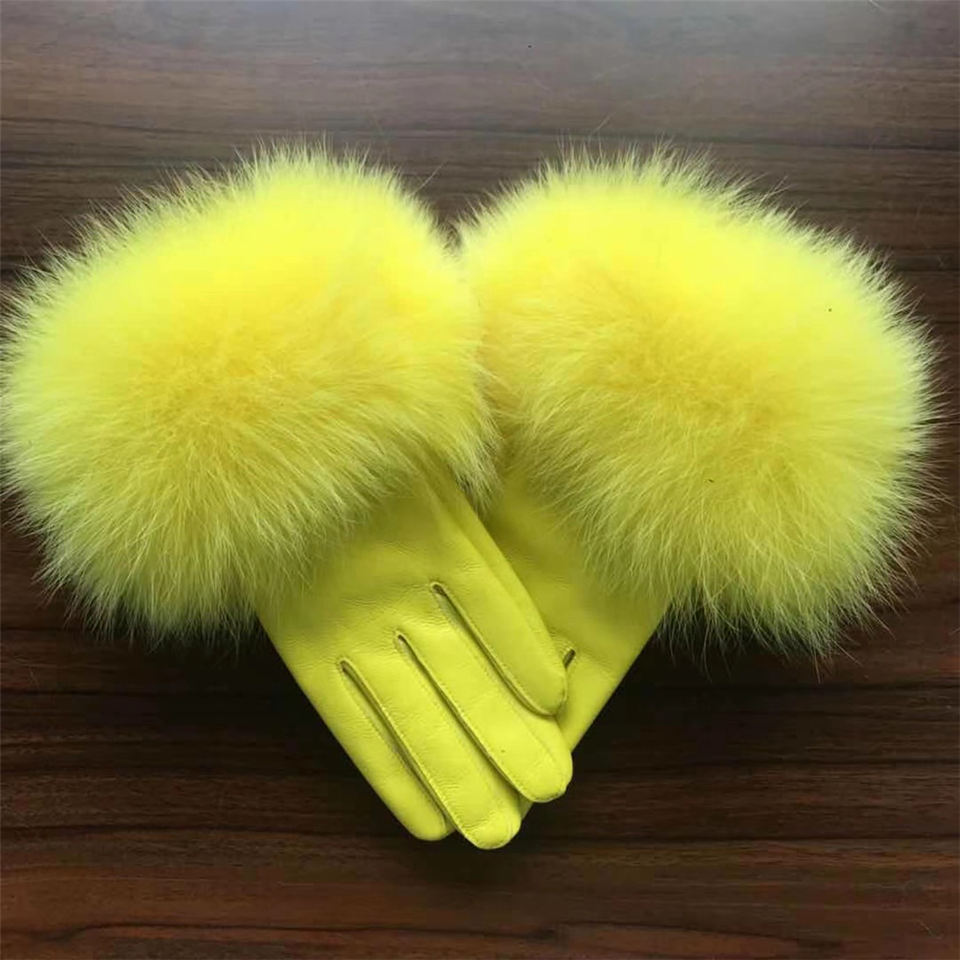 ถุงมือยาวหนังแกะแท้สำหรับผู้หญิงถุงมือแฟนซีเย็บแข็งแรง