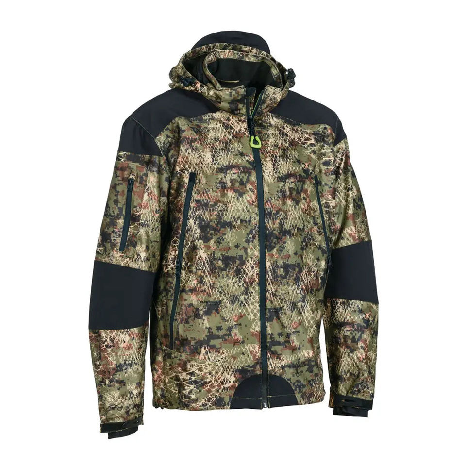 เครื่องแบบยุทธวิธีของแท้ลายพรางเสื้อแจ็คเก็ตกันลมกันน้ำสำหรับเดินป่าล่าสัตว์มีฮู้ดอุปกรณ์ระบายอากาศ