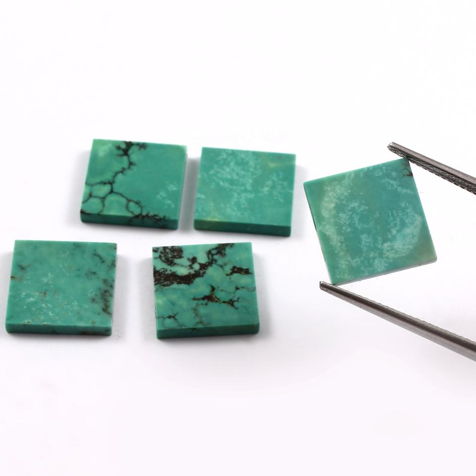อัญมณีทรงสี่เหลี่ยมแบนราบสีเทอร์ควอยส์ทิเบตแท้สำหรับทำเครื่องประดับสร้อยข้อมือแหวนเครื่องประดับสำหรับทำเครื่องประดับขายส่ง