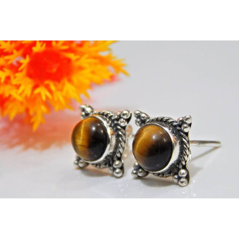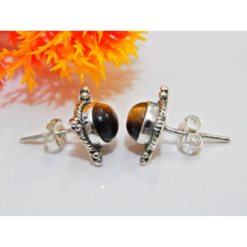 ต่างหู925ตาเสือแท้เครื่องประดับเงินสเตอร์ลิงทำด้วยมือพร้อมกุหลาบทองพลอยอัญมณีทรงหลังเบี้ยต่างหูตาเสือ