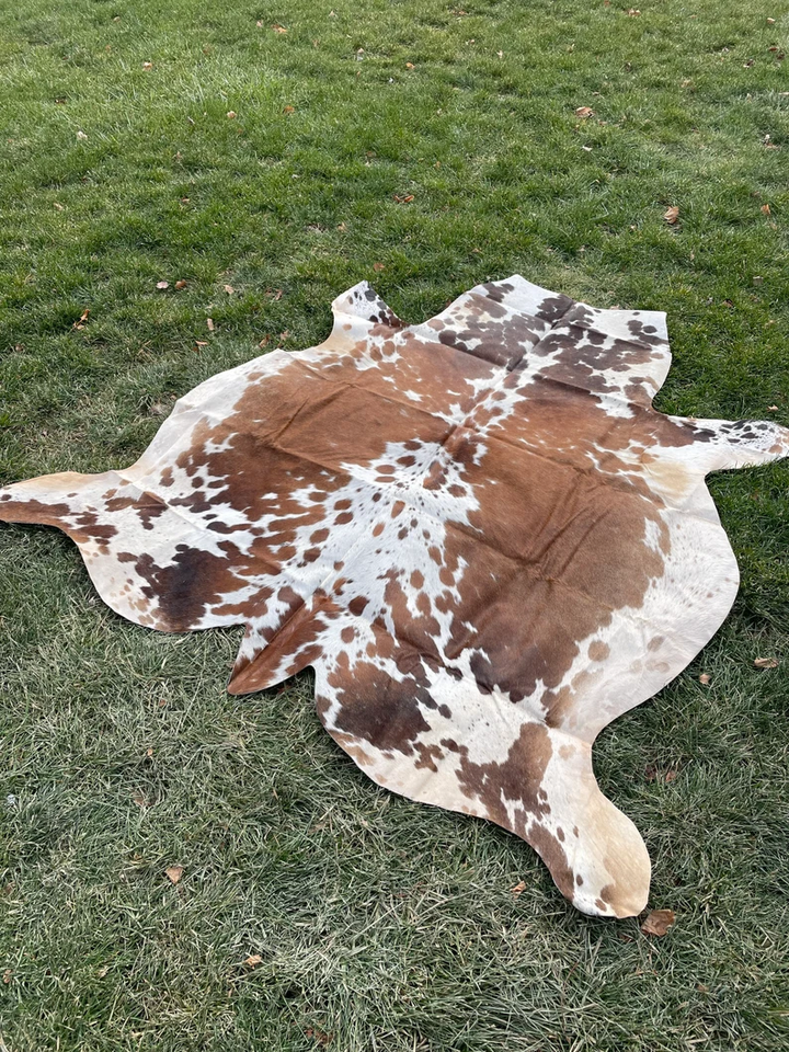 พรมหนังวัวแท้สามสีลายจุดสไตล์บราซิลพรมสำหรับสวดมนต์แบบอิสลามใช้ในห้องออกแบบโลโก้ได้ตามต้องการ