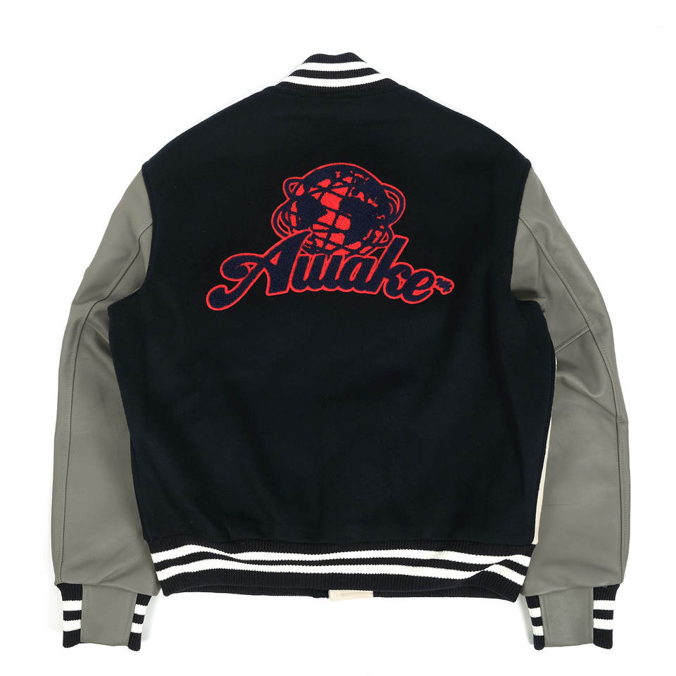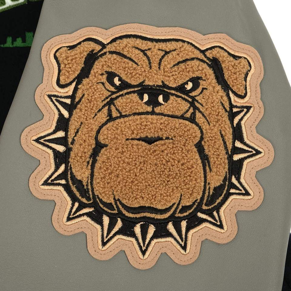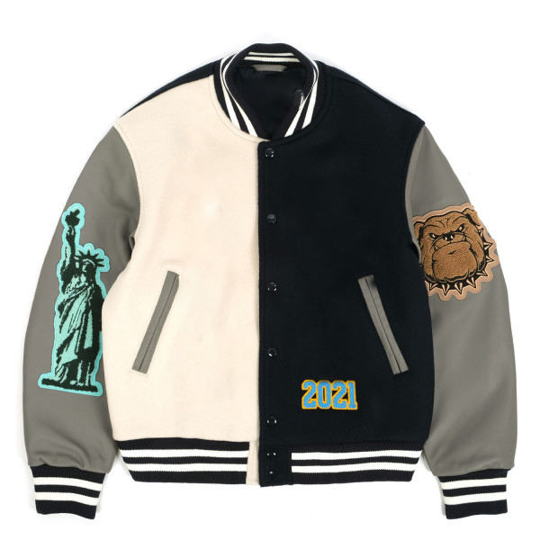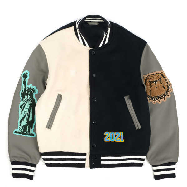 แจ็กเก็ตเบสบอลมหาวิทยาลัยของแท้สำหรับผู้ชายเสื้อแจ็กเก็ตขนสัตว์ปักลายสำหรับมหาลัยพร้อมเครื่องแบบแขนเสื้อหนังขายส่ง