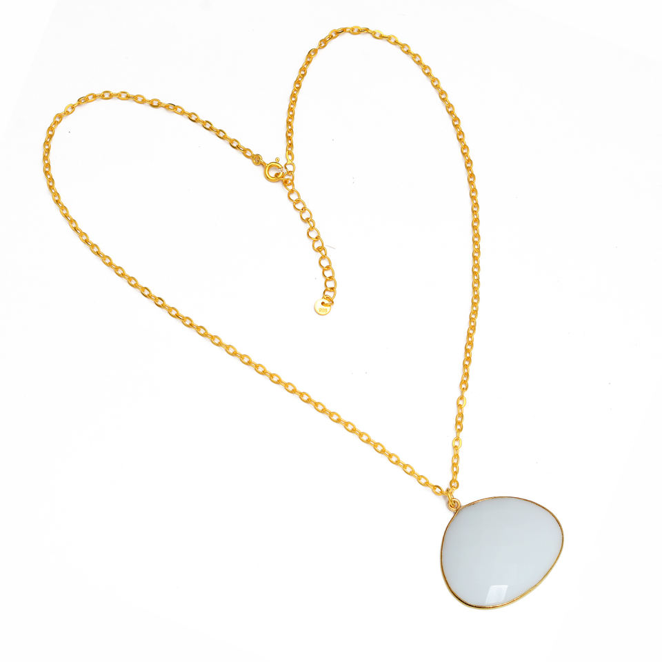 ชุดฝาถ้วยคาลซิโดนีสีขาวขุ่นของแท้925เงินสเตอร์ลิง18K ชุบทองสร้อยคอจี้โซ่แบบกำหนดเองสำหรับเป็นของขวัญ