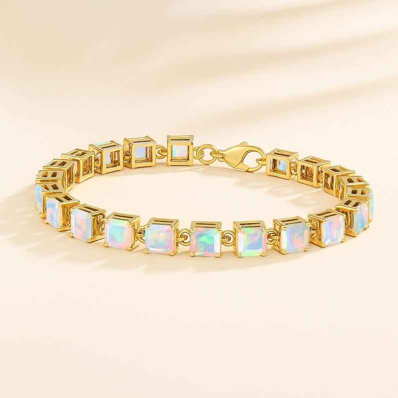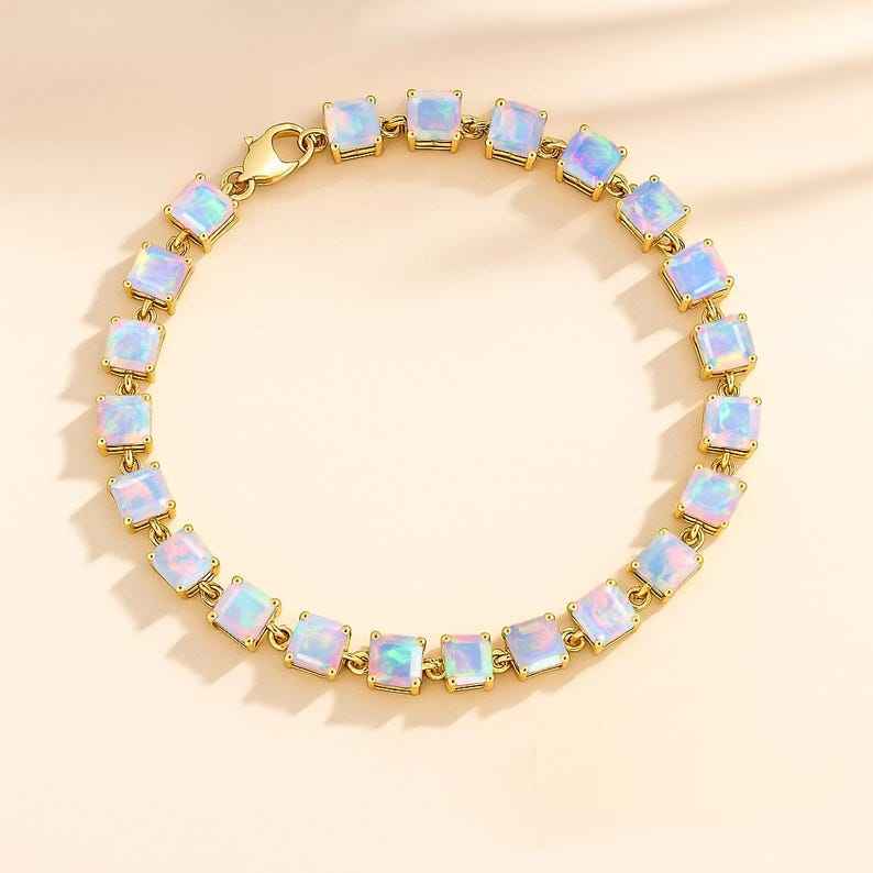 คีย์เวิร์ด:สร้อยข้อมือเทนนิสไฟโอปอลสีขาวเรืองแสงหลากสีที่สร้างขึ้น