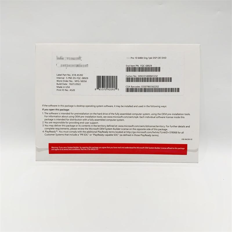DVD แพ็คคอมพิวเตอร์ของแท้ Win 10 Pro DVD เปิดใช้งานออนไลน์สำหรับธุรกิจ