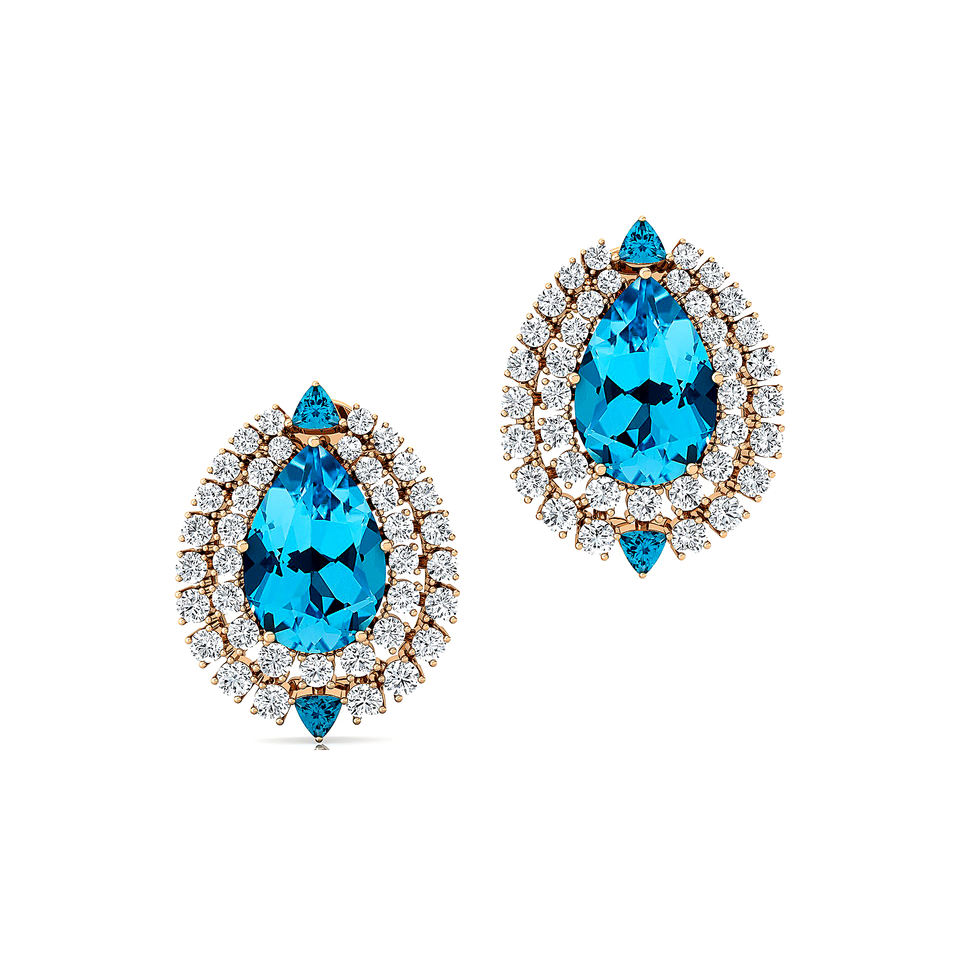 ต่างหูทองคำแท้ประดับพลอยบลูโทแพซและเพชรแท้ ดีไซน์น่ารัก เหมาะสำหรับเป็นของขวัญวันครบรอบ