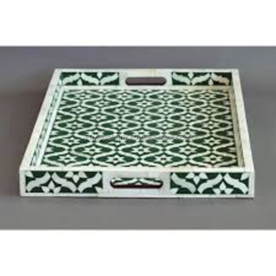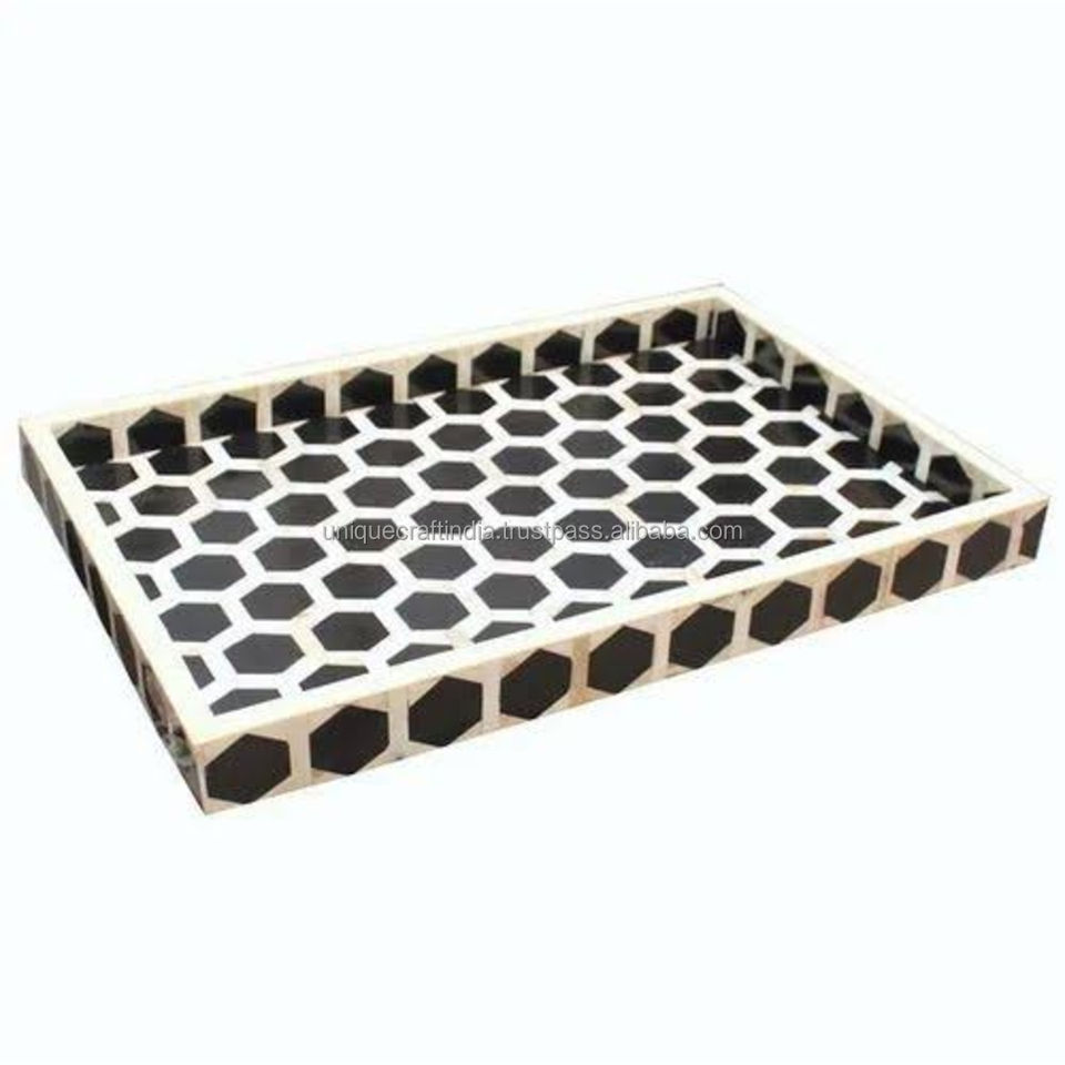 ถาดฝังกระดูก geoform ถาดเสิร์ฟทรงสี่เหลี่ยมทำมือพร้อมลวดลายเรขาคณิตสำหรับตกแต่งร่วมสมัยของขวัญและการแสดงผล