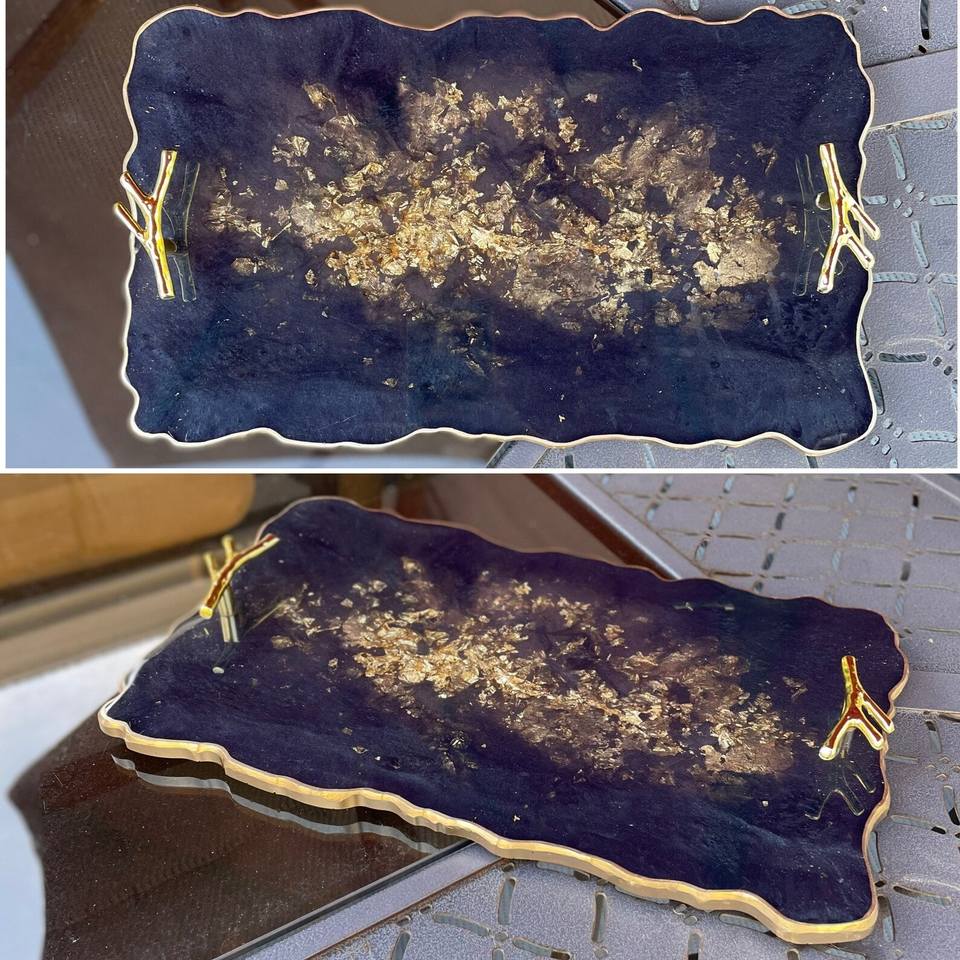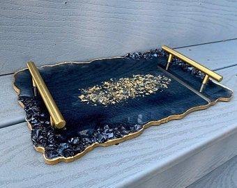 Geode Inspired Resin Handmade Serving & Vanity Tray with Petals Model Fruit Design-Love & Food Theme Gift-Aaliyan Impex