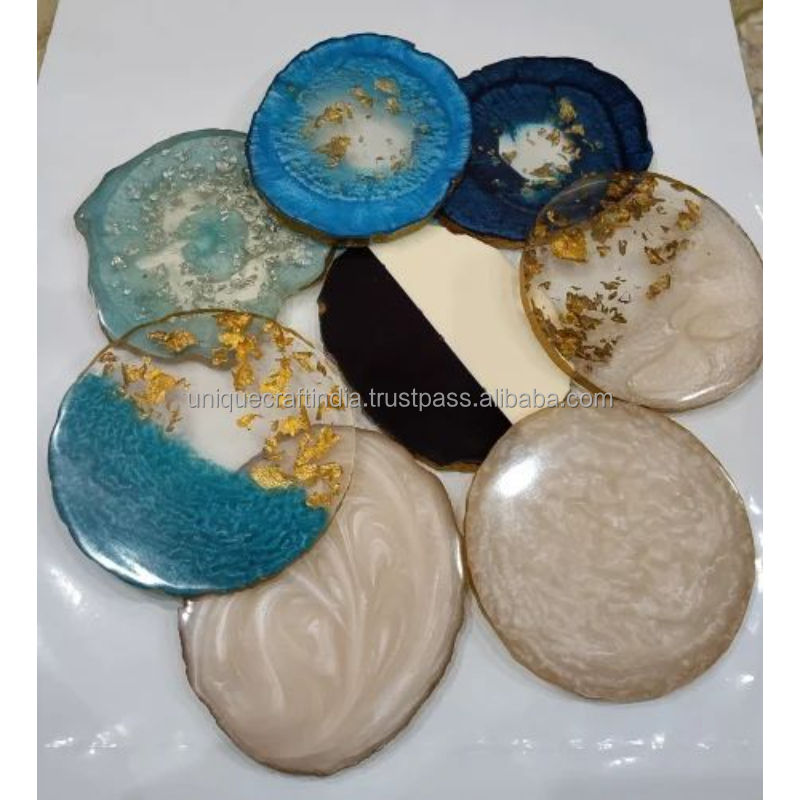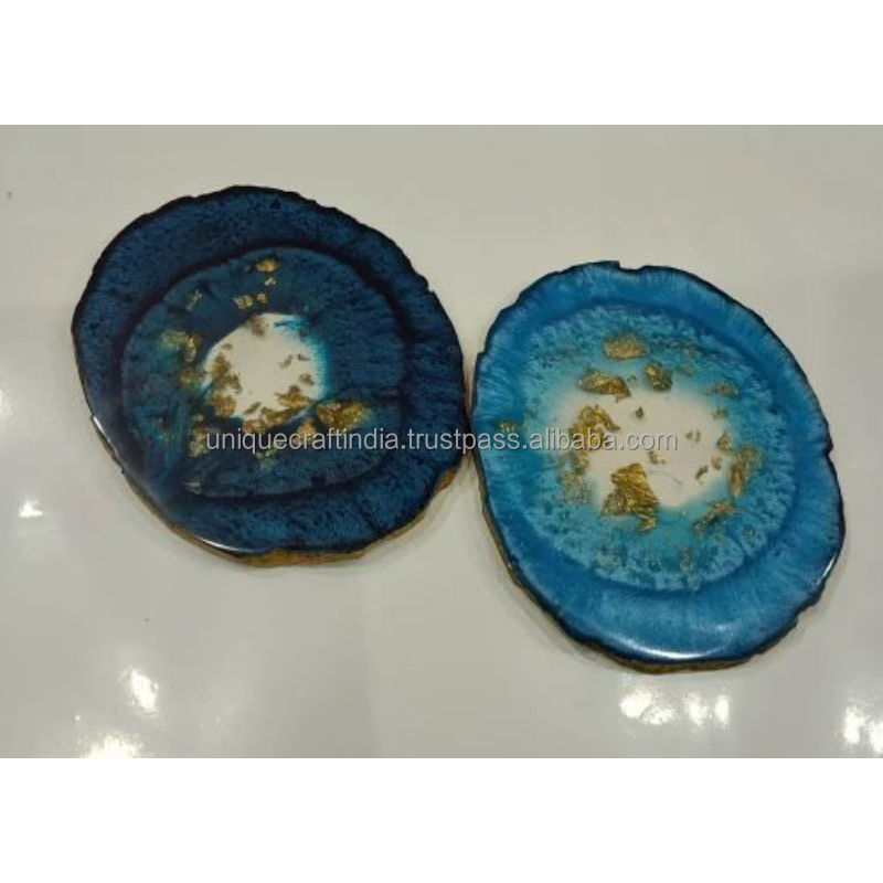 : ที่รองแก้วเรซิน Geode ทำด้วยมือแผ่นรองเครื่องดื่มลายอีพ็อกซี่สำหรับตกแต่งโต๊ะรับประทานอาหารในบ้านสำนักงานขายส่งจำนวนมาก