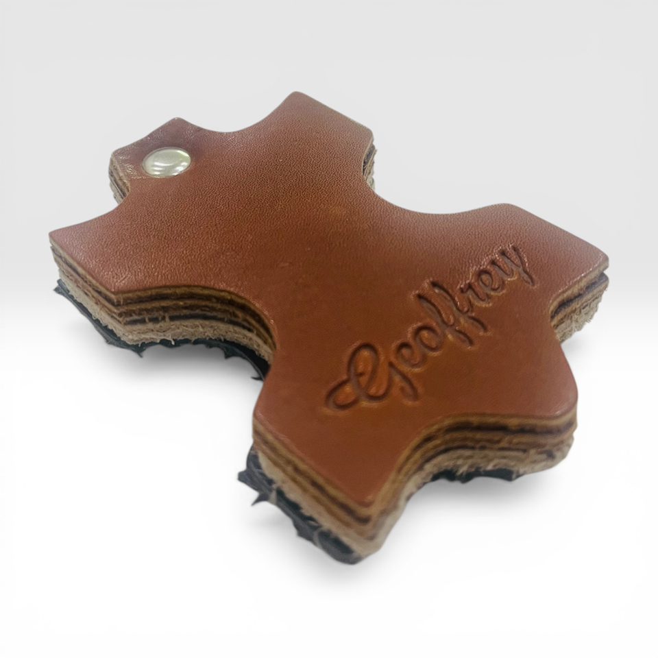 พวงกุญแจสแตนเลส Geoffrey พร้อมสายหนัง สีแทน สีดำ สีน้ำตาลเข้ม สีน้ำตาลโบราณ สีครีม สีดำครีมมี่ ขนาด L 9 ซม. X W