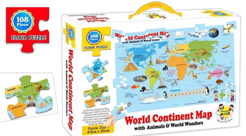 ปริศนาการเรียนรู้ทางภูมิศาสตร์ที่สนุกและมีส่วนร่วมกับปริศนาแผนที่โลก108ชิ้นกับสัตว์และสถานที่สำคัญ