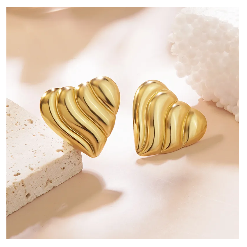 ตุ้มหูสแตนเลสชุบทอง18K ทรงเรขาคณิตเครื่องประดับกันน้ำสำหรับผู้หญิงต่างหูรูปหัวใจ