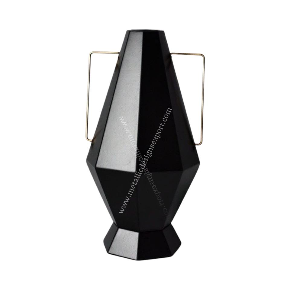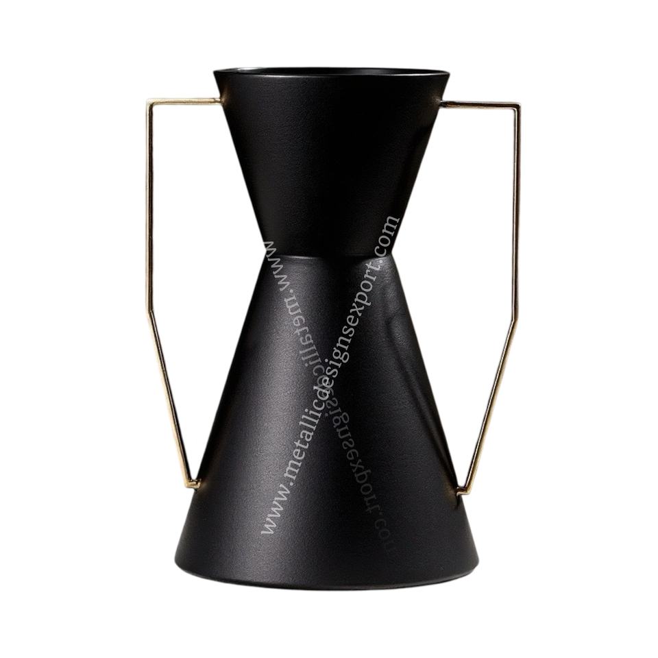 แจกันตั้งพื้นทำจากโลหะสีดำทรงเรขาคณิตของตกแต่งบ้านทำจากเหล็กทนทานจัดงานแต่งงานที่ทันสมัยในออฟฟิศงานอีเวนต์