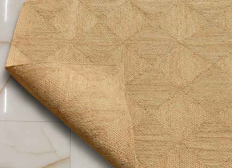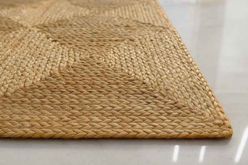 พรมปูพื้นสไตล์โบโฮชิค ลายเรขาคณิต ทำจากเส้นใยธรรมชาติ เหมาะสำหรับบ้านสไตล์ฟาร์มเฮาส์