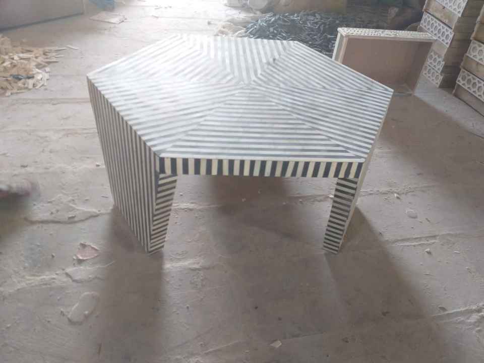 โต๊ะกาแฟทรงกลมไม้เนื้อแข็งฝังลายเรขาคณิตสไตล์บ้านไร่แบบดั้งเดิม เฟอร์นิเจอร์ห้องนั่งเล่น ของตกแต่งบ้าน