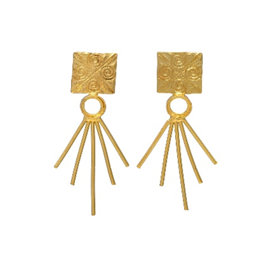 ต่างหูทรงเรขาคณิตทรงกลมแบบห้อยเครื่องประดับทองเหลืองชุบทอง