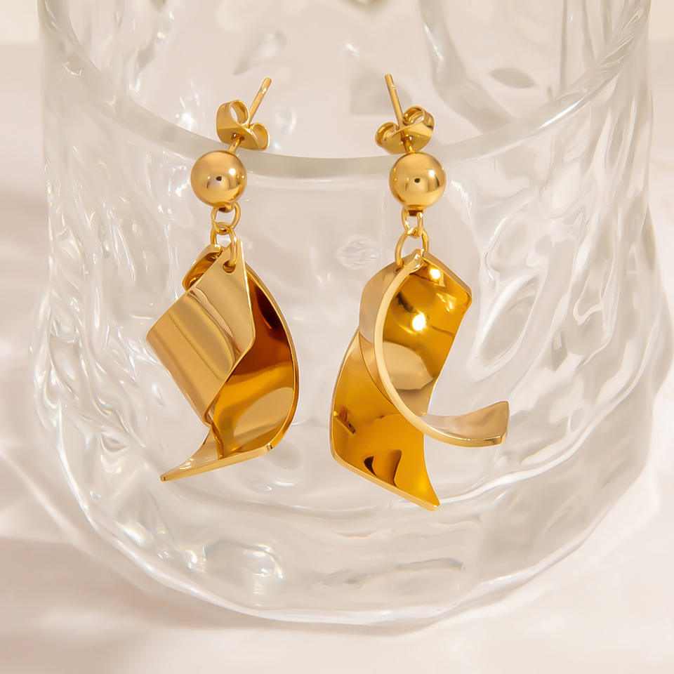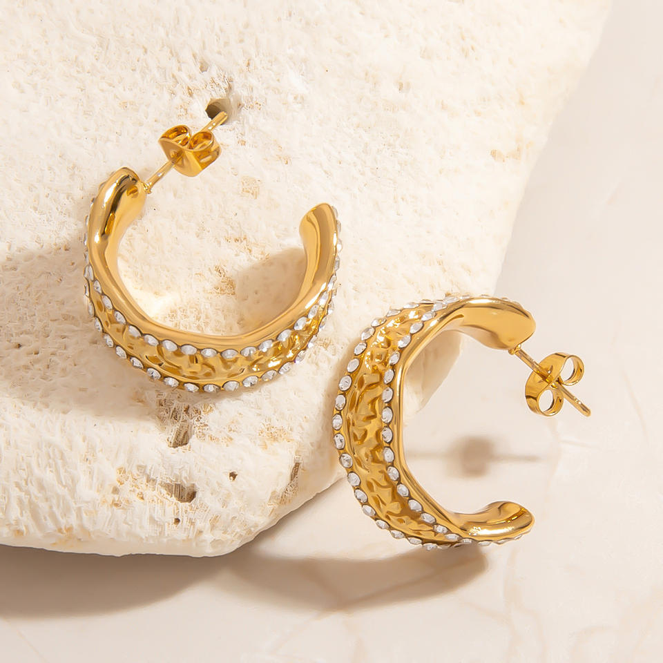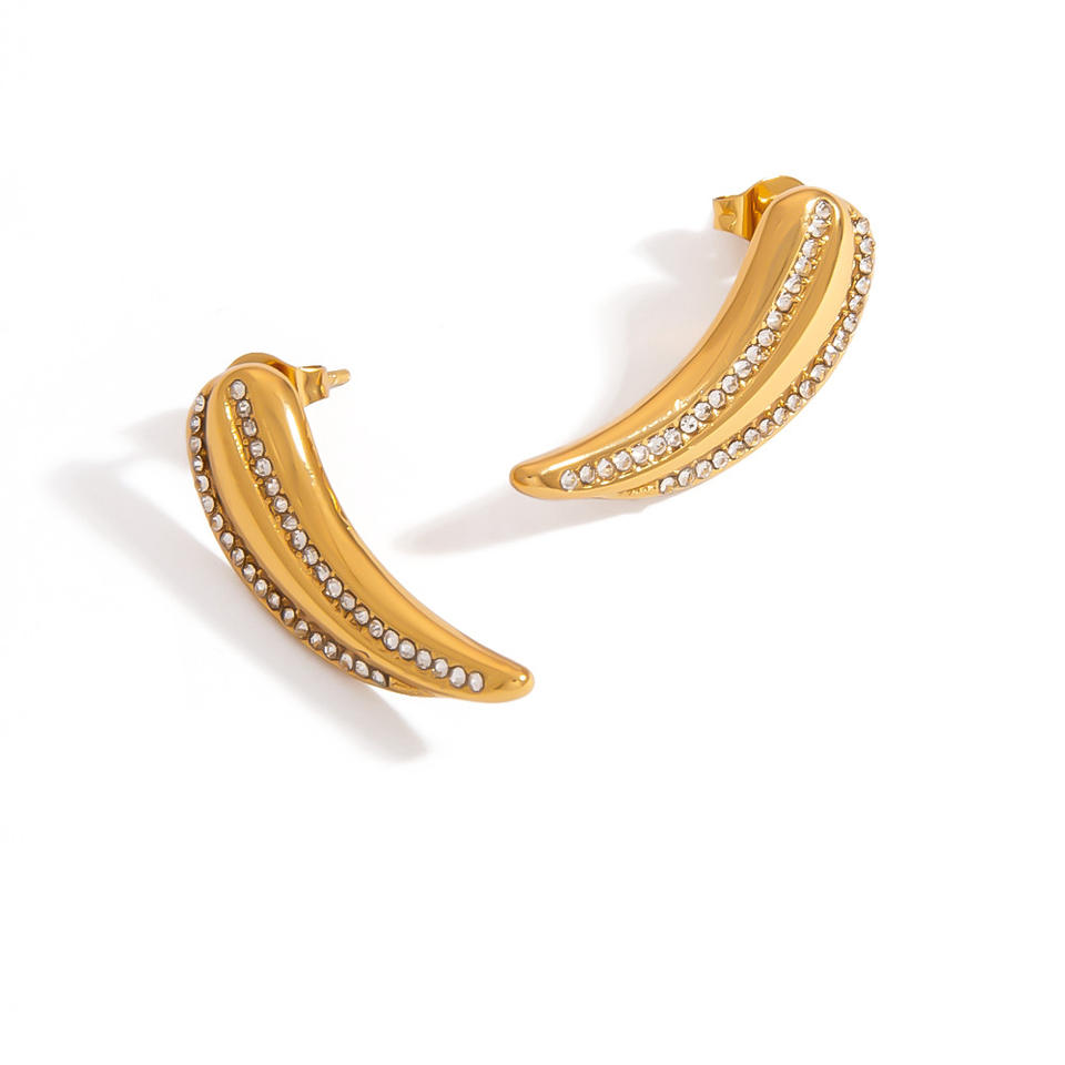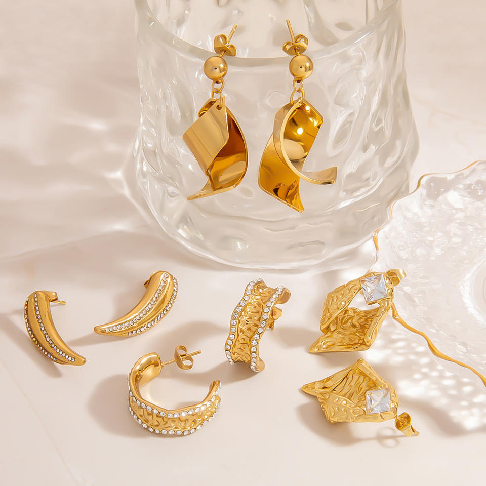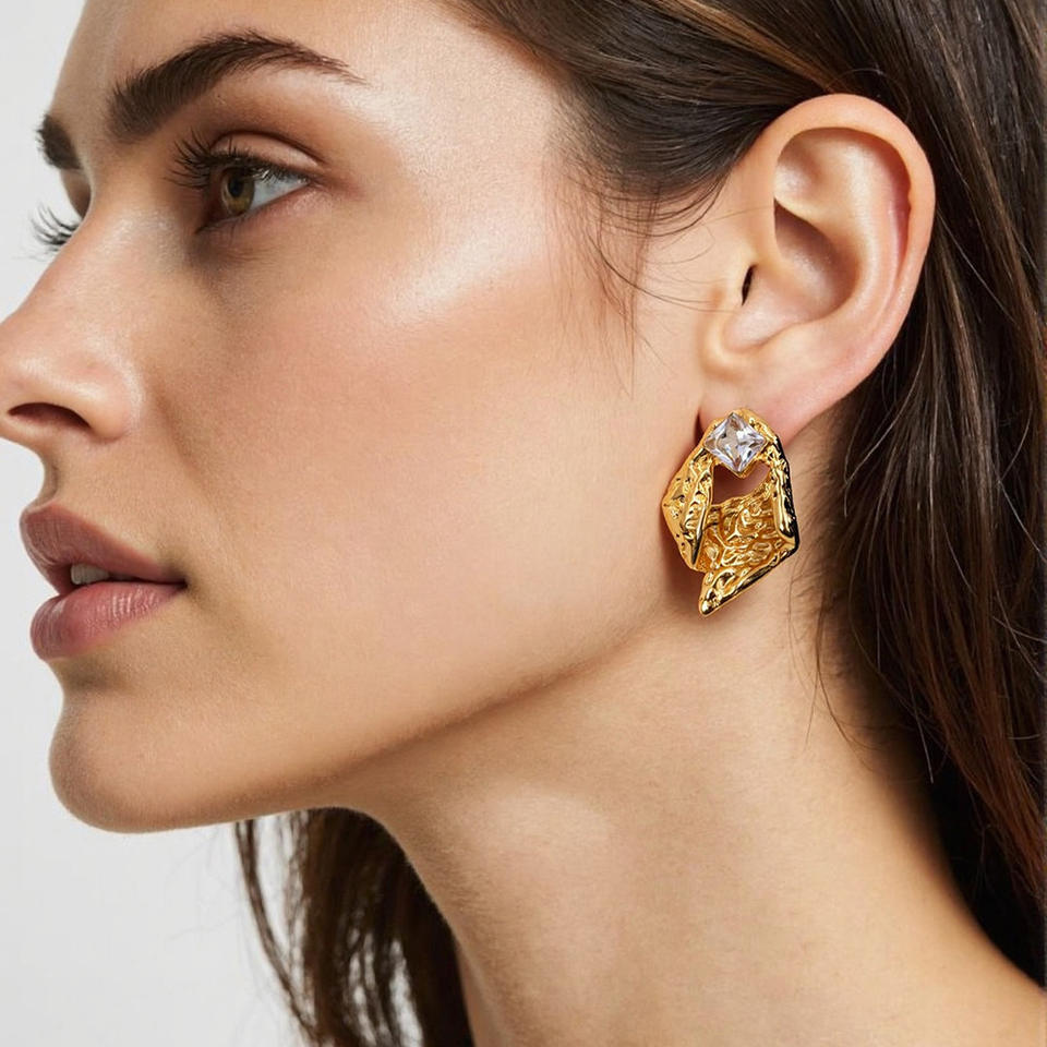 ต่างหูคริสตัลทรงเรขาคณิต ต่างหูสแตนเลสสำหรับผู้หญิง สวมใส่ได้ทุกวัน โทนสีทอง ขอบประดับเพชร EH11886