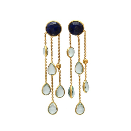 Lapis ธรรมชาติ & สีน้ำเงินบุษราคัมต่างหูทำด้วยมืออัญมณีและลูกแพร์เครื่องประดับอย่างดีต่างหูห้อยชุบทอง