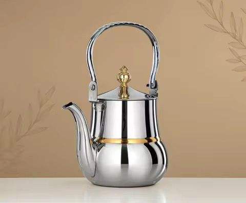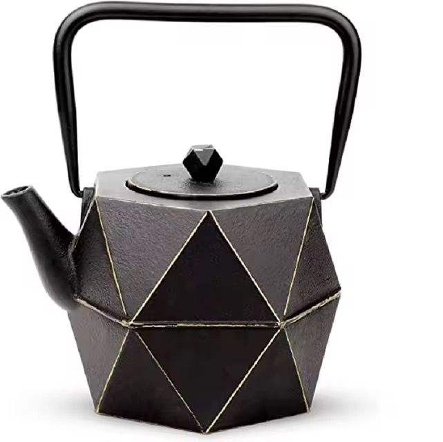 กาต้มน้ำดีไซน์เรขาคณิต กาต้มชาโลหะทันสมัยพร้อมหูจับสีทอง หม้อต้มน้ำสำหรับเตาแก๊ส ใช้ในครัว